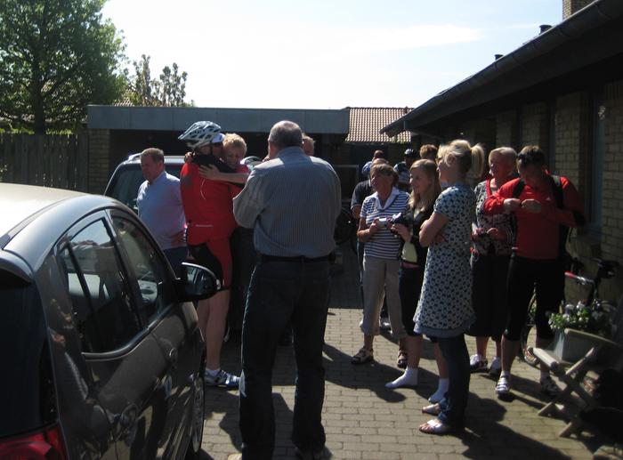 | Madsen byder Madsen velkommen på Fanø efter de første 4 timer i sadlen..... |